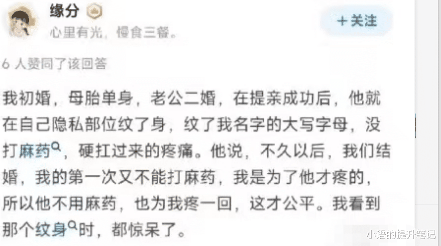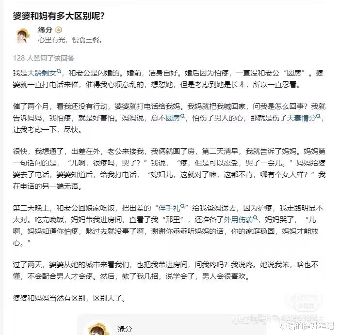 而她却是单到38岁也没遇到比海哥离异带娃更好的人,显然是她自身条件不怎么样;除了大姑娘的身份,没其他可列的优点了,所以她才如此放大和重视,又是拿电筒照,又是婆婆收初夜浴巾和录音的;