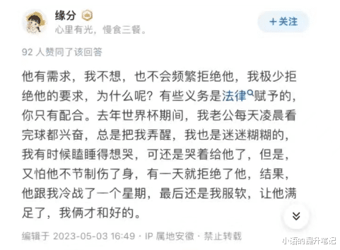 她说的除了那几天,她不能拒绝海哥哥,因为那是义务,强调这个,无非是为没有话语权的自己,挽尊而已;