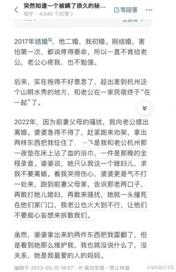 海哥哥前妻不是处女,她的海哥哥依然愿意娶,说明前妻各方面条件在她之上,甚至有可能是海哥高攀的对象;
