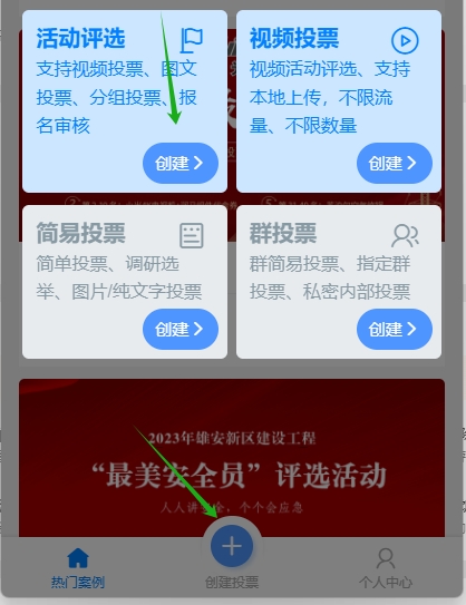 进入小程序→点击“创建投票”→选择“活动评选”模板。适用于企业/校园/品牌等场景使用。