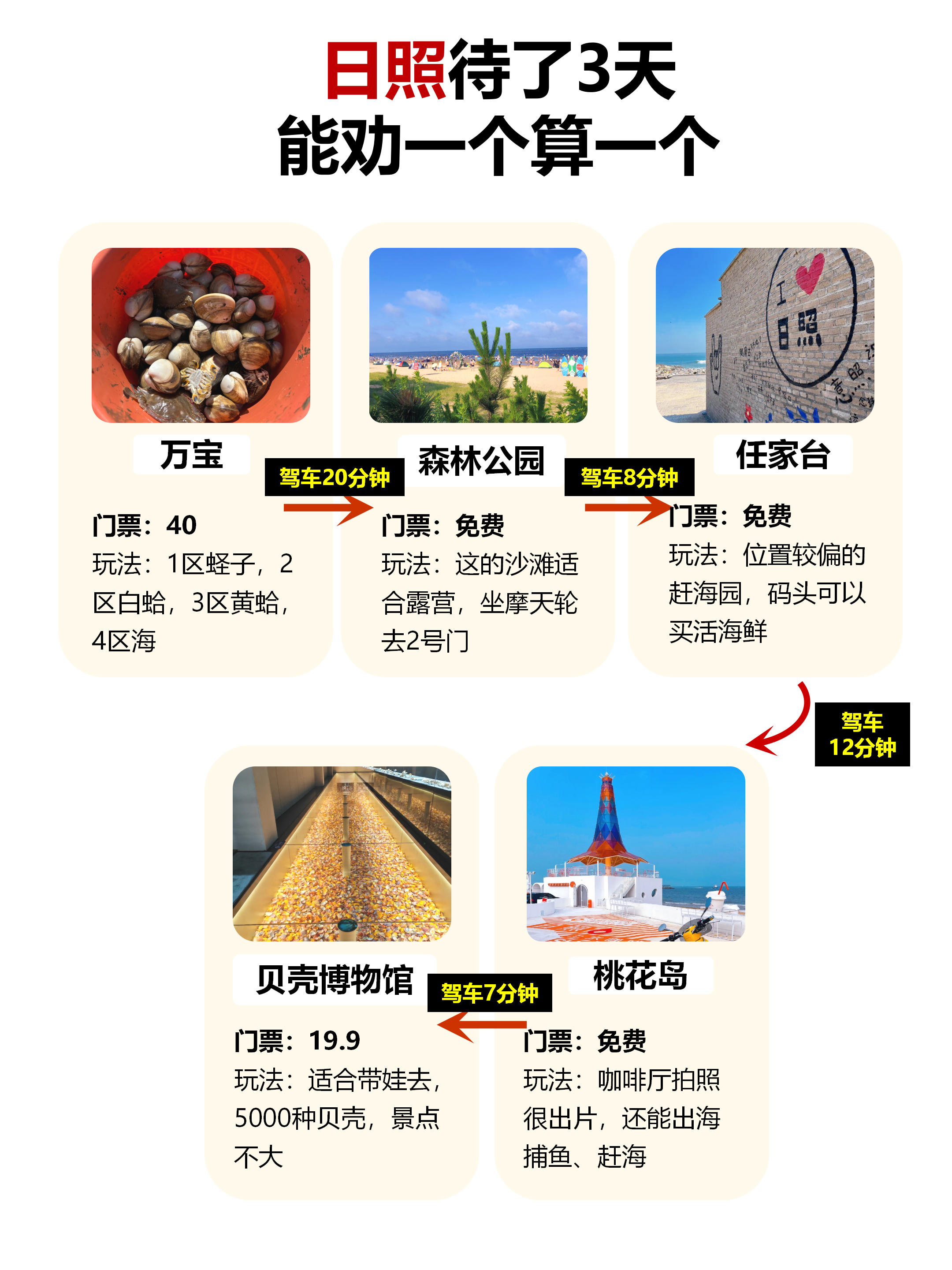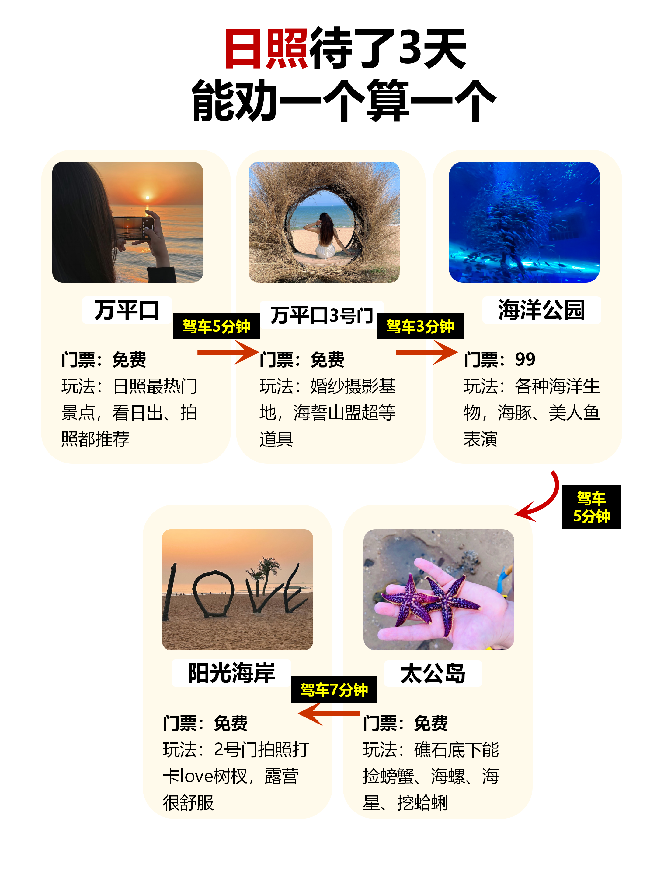 ① 万平口等开放式景区随时能进,但日照海洋公园等室内场馆门票,提前一天网购通常更便宜
