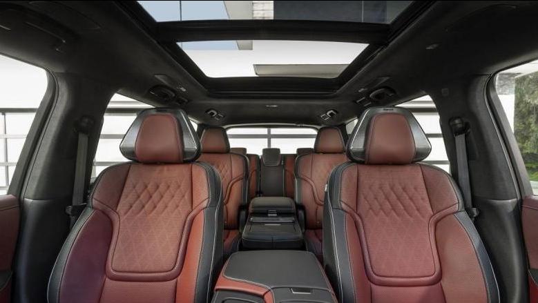 走进车内,新车内饰整体延续了典型的日系豪华风格,中控台上搭载双14.3英寸液晶显示屏,配备semi-aniline材质包覆的座椅,并且采用双色车身缝线以及open-pore 木质饰板进行点缀,营造出不错的豪华感。与此同时,新车第一排和第二排还搭载按摩座椅,可以通过前方中控屏进行操控,同时第三排座椅还拥有座椅加热功能,并且搭载Klipsch Reference Premiere音响系统,拥并且配置24个扬声器,进一步提升车内驾乘的舒适性。