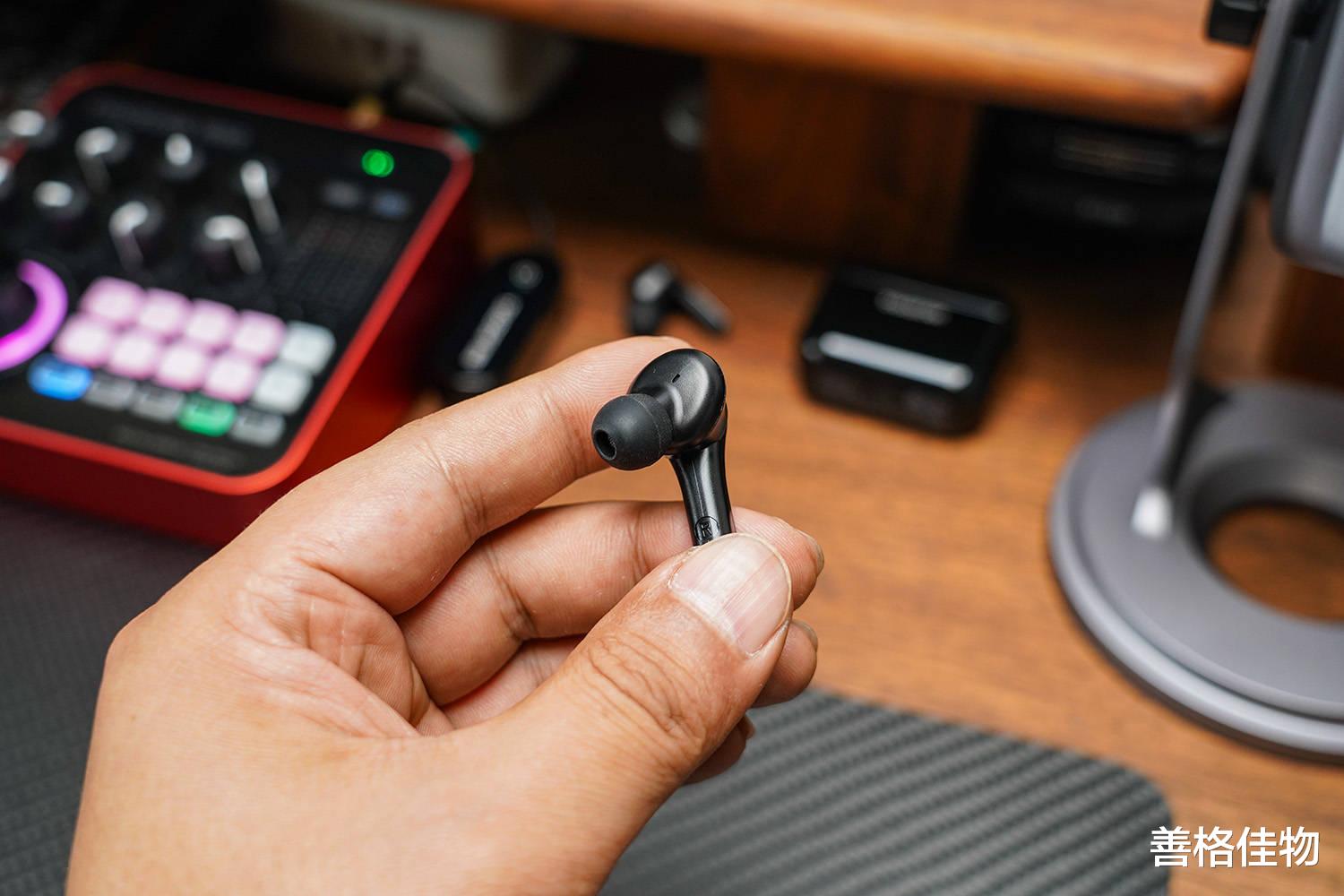 耳机是入耳式结构,单耳重量5克左右,超轻佩戴,几乎无感,贴合度和密闭性都非常好,在一定程度上可以起到物理降噪的作用,佩感也很舒适,对于需要长时间直播和音频创作的用户来说,非常友好。