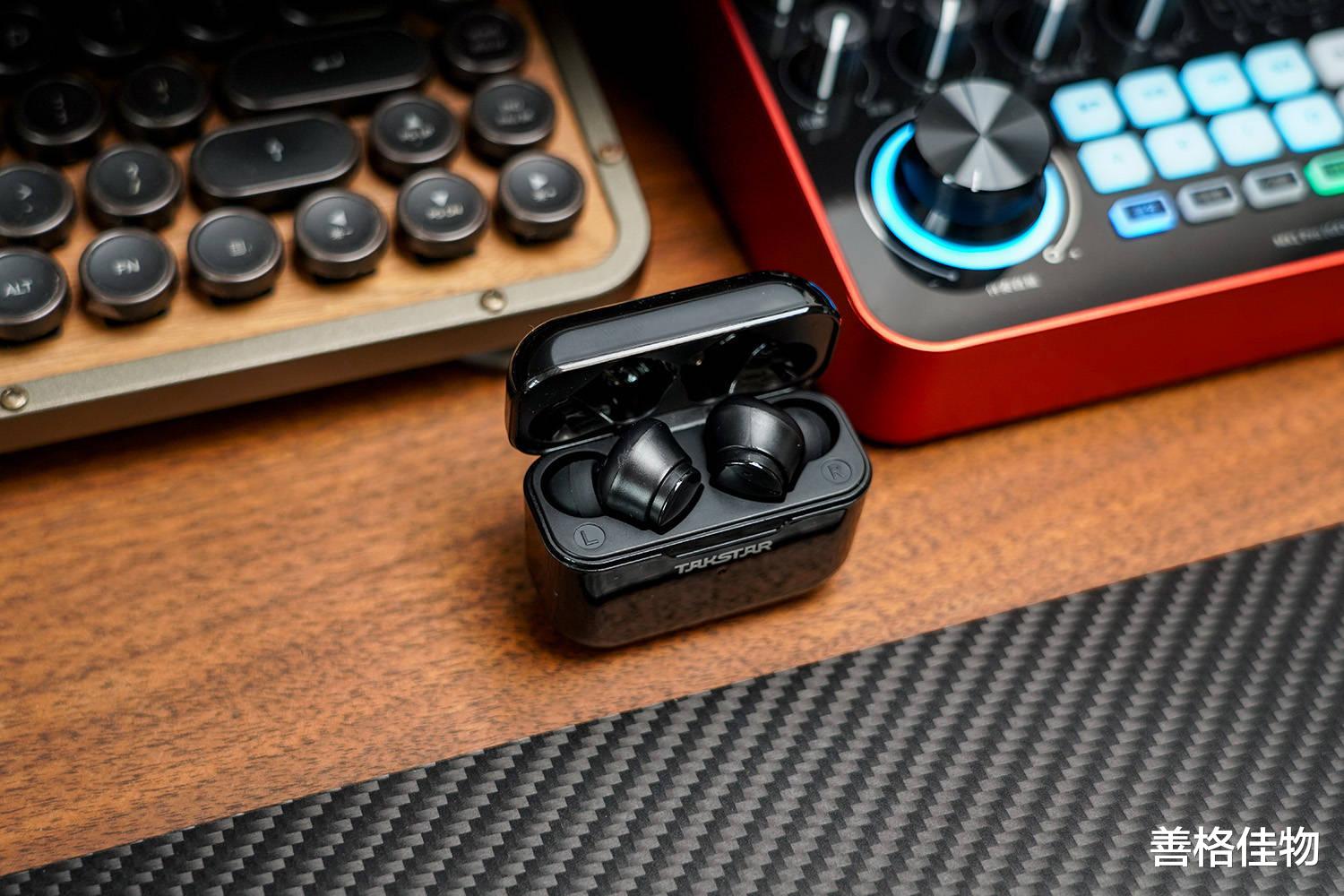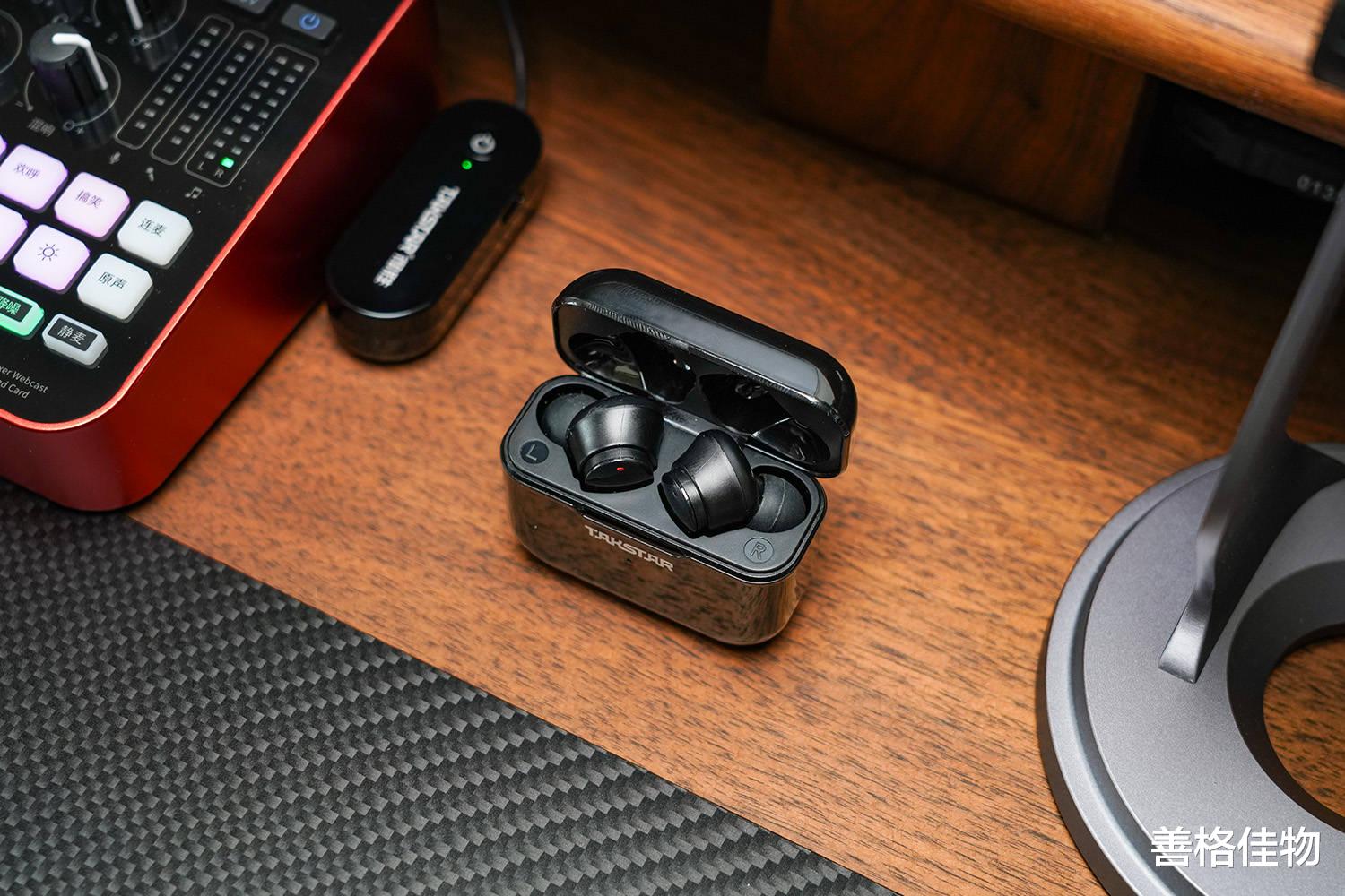 耳机部分与传统的蓝牙耳机一样,充电盒+耳机结构,单耳可持续使用5小时左右,双耳采用了独立芯片,接替使用的话,可达10小时,充电盒内置450mAh大容量电池,综合续航时间最高可达15-25小时(单/双耳),这个续航能力,应对大多数高强度创作任务,都是完全没有问题的。
