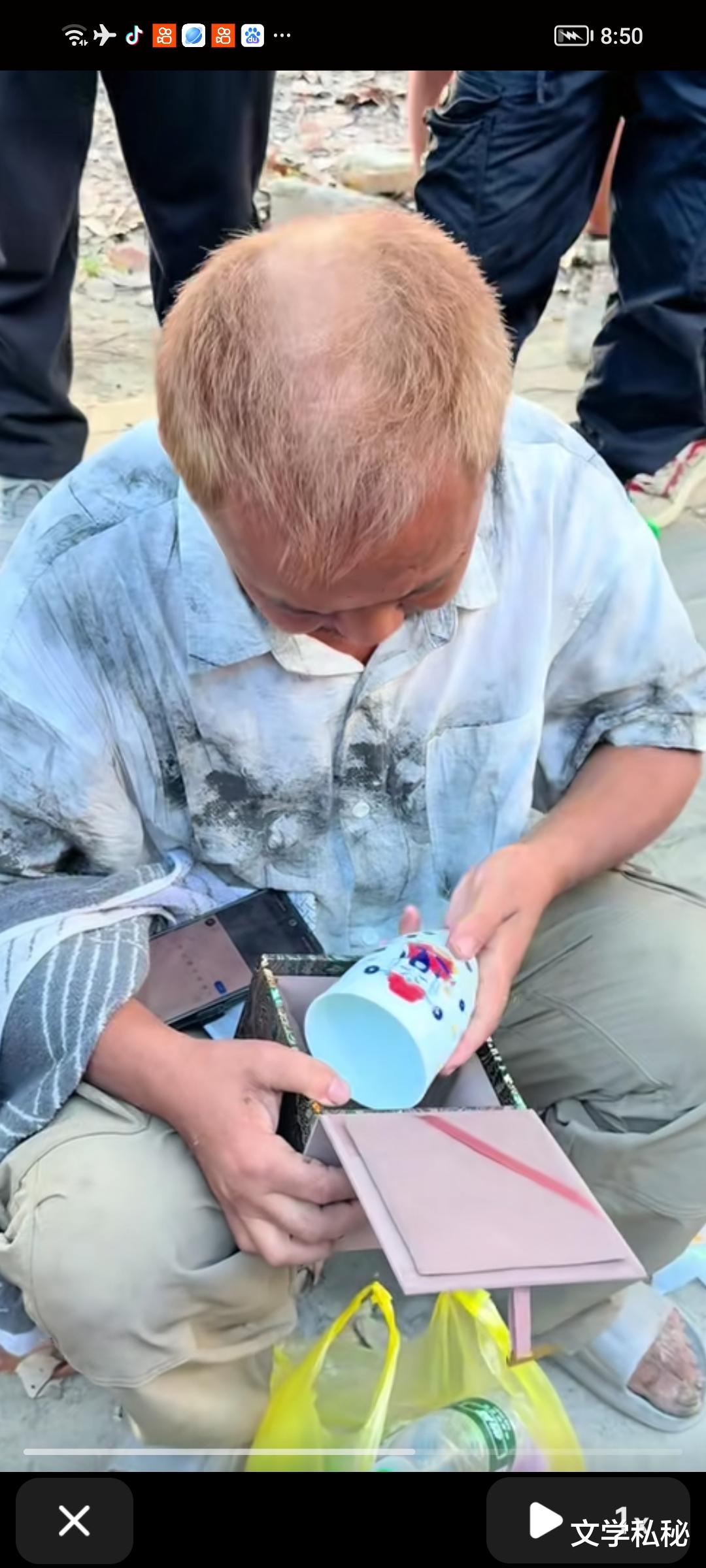 来自于线上的对沈巍的尊崇,依然在他的身边上演。25日,一对来自景德镇的母女,带着印有沈巍书画作品的瓷器茶杯,送给沈巍。他们还说,可以寄来坯胎,供沈巍作画,然后再由他们烧制。