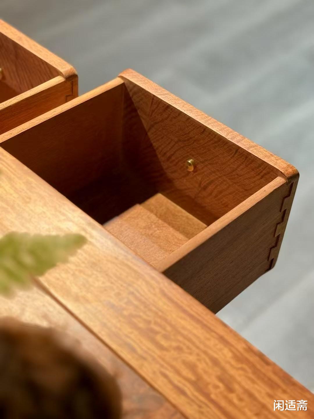 柜体框架采用“攒边打槽装板”工艺,边框与面板衔接紧密,受力均匀;抽屉内部采用“穿带”结构,防止面板变形,底板以厚实实木打造,承重力优异。抽屉滑轨选用传统“木滑轨”,柜足采用内翻马蹄造型,线条饱满有力,与柜体衔接稳固,既增强了整体的承重性能,又添几分古典韵味。