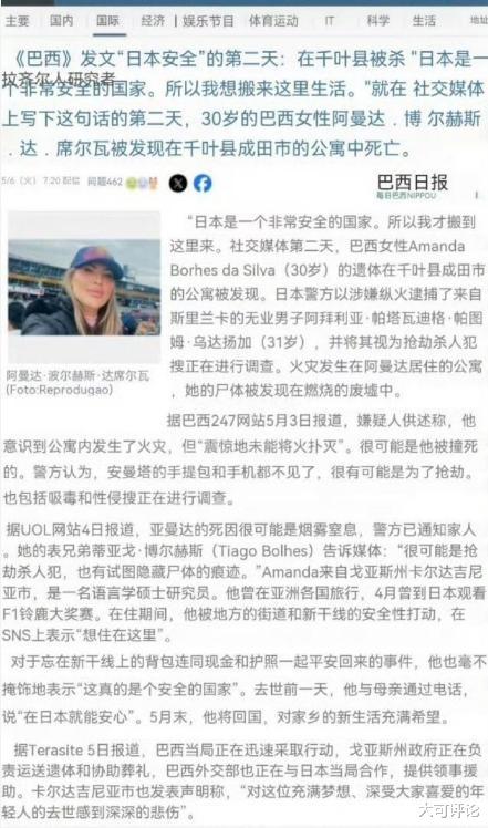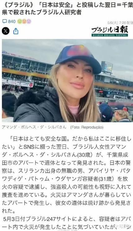目前,巴西外交部门正在就案件调查进展与日本方面进行沟通,女子家庭所在地巴西戈亚斯州政府则正在设法将女子的遗体带回巴西。
