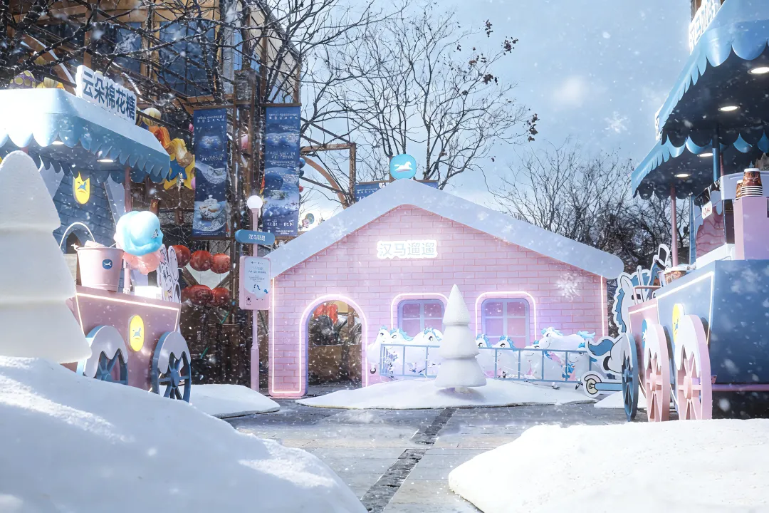 现场布置得颇为梦幻,硕大的旋转木马、粉色的小屋装饰以及售卖着咖啡和棉花糖的小推车。汉庭新发布的汉马家族 IP 也随处可见,到处都是可爱的小马形象,小马汉汉也成了孩子们的新宠。