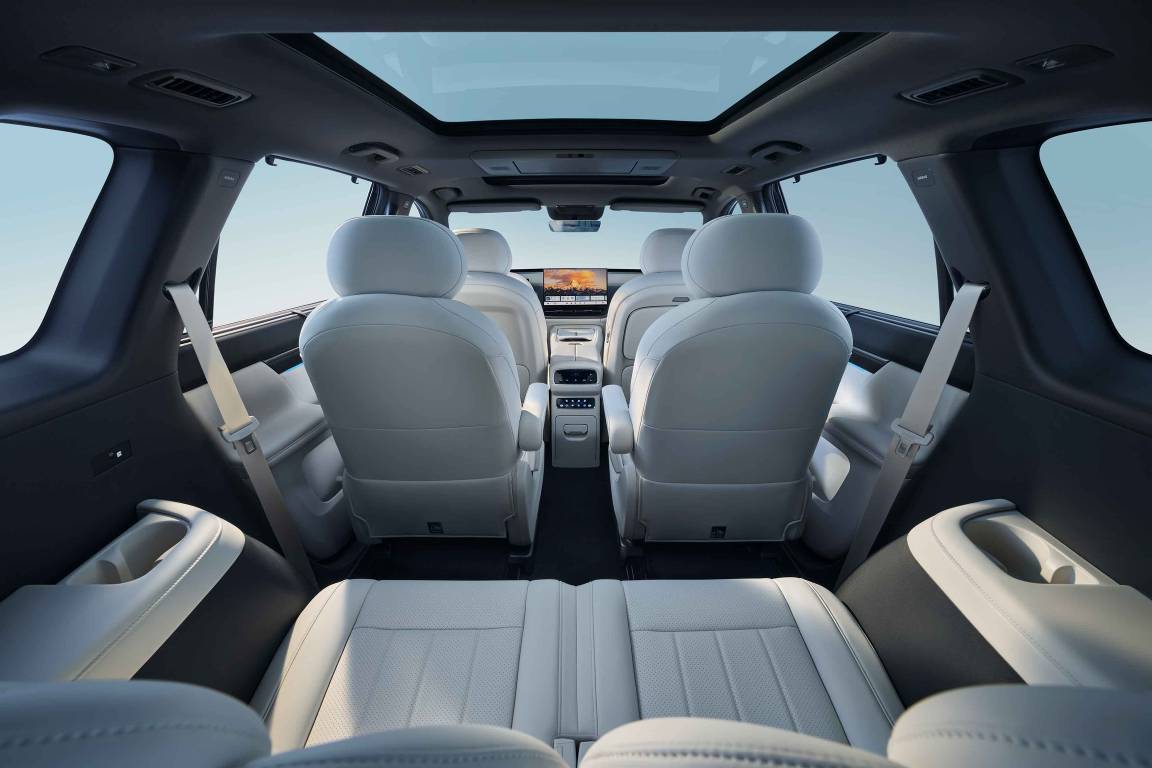作为“大舒适家”,eπ008的空间是核心优势,5米车长、超3米轴距,搭配真三排大六座布局,座座皆为头等座。全家出游时,180mm的宽过道让家人轻松进入第三排,座椅优化靠背形面,久坐不累;二排采用独立大两座设计,右侧零重力座椅升级10点按摩,力度和面积提升30%,还有座椅通风/加热及新增独立空调温控屏,为家人营造头等舱般尊享感;主副驾则配备8点按摩,力度和面积同样提升30%,有效缓解长途疲惫。此外2026款eπ008主副驾支持完全放平,单人可躺卧看星空,双人可成床休憩,这才是“移动的家”该有的模样。