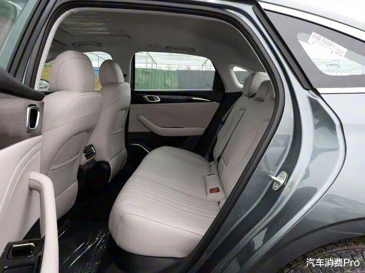 侧面能看到有一定的小溜背,车窗一圈以及侧裙都使用了银色饰条点缀以增加时尚感,门把手采用传统样式,车尾配有类似贯穿式尾灯,中央有吉利的英文标识。