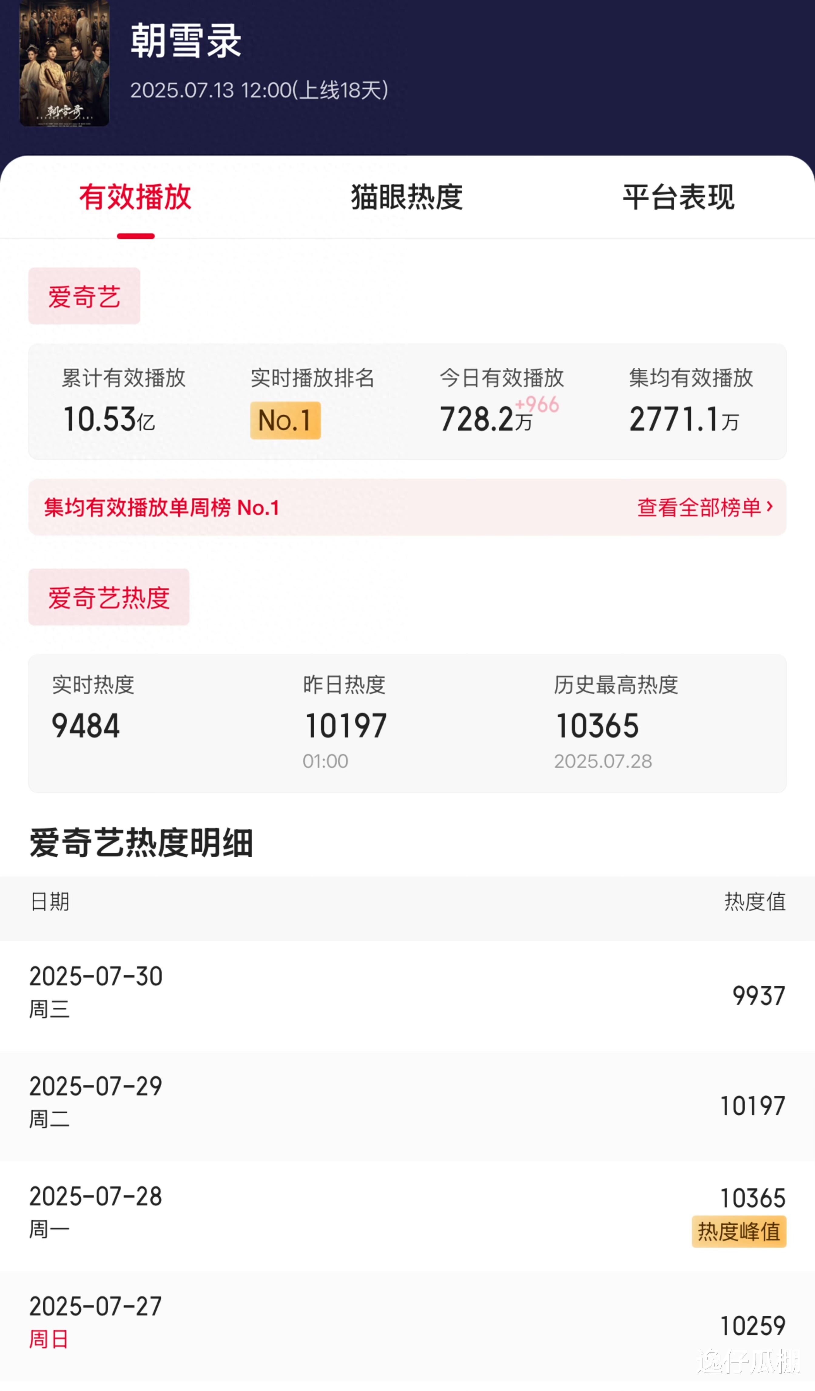 如果说2025年暑期档电视剧哪部是最意外的黑马!那么一定要数《朝雪录》莫属!这部无论是主演咖位,还是制作团队与同档期其他剧集相比,都不是最顶尖的,但却凭借着环环相扣的故事,精彩刺激的剧情,以及演员们的精湛演技,不仅靠实力碾压了这个暑期档的一众古装剧,更是完胜同期《扫毒风暴》和《樱桃琥珀》,最终成为爱奇艺2025年第三部热度破万剧集,也成为今夏爆款!