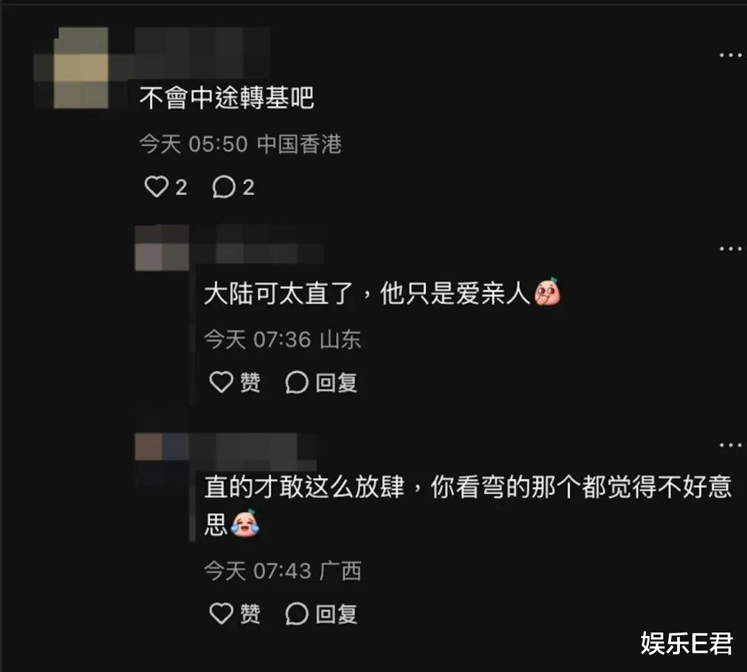 还有人质疑:“不会中途转基吧”。不过也有网民直言:“大陆可太直了,他只是爱亲人”、“直的才敢这么放肆”。