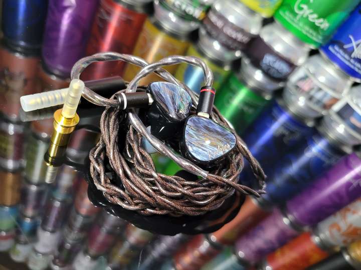 配件部分,依旧是诚意十足,标配古河铜镀银与7N单晶铜混编线材,0.78mm双针可换线设计,尾插可旋转插接更换插头,3.5mm和4.4mm都有配置,便于搭配不同规格前端输出使用。线材的颜值和腔体的设计也形成美学共鸣,说人话就是颜色花式挺配套的,尤其这个线粗的上手就觉得HiFi,脑放加半格。