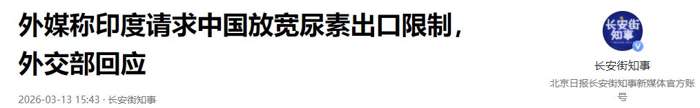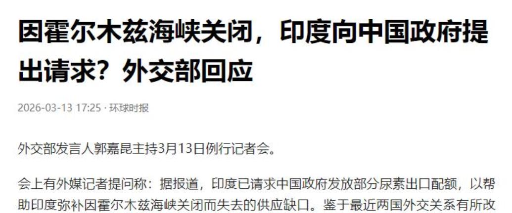 参考资料:《印度因霍尔木兹海峡关闭请求中国放宽尿素出口限制,中方回应》——齐鲁壹点