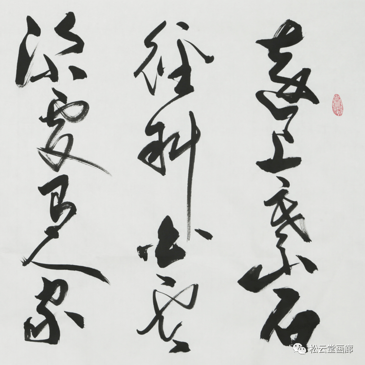 “五”字却收线成点,凝点成拳,中间那点白圈预示着化生的开始,分明就是一个“无极”图,无极而太极,化生天地,化生五行,昭示着返璞归真、道生万物的总轨迹;而“行”字如蜿蜒蠕动,匍匐在地的巨龙,属于乾卦中的潜龙或见龙,显然预示发展的艰难与曲折,在条件没有成熟时,需要一步一个脚印地小心翼翼地去积累。
