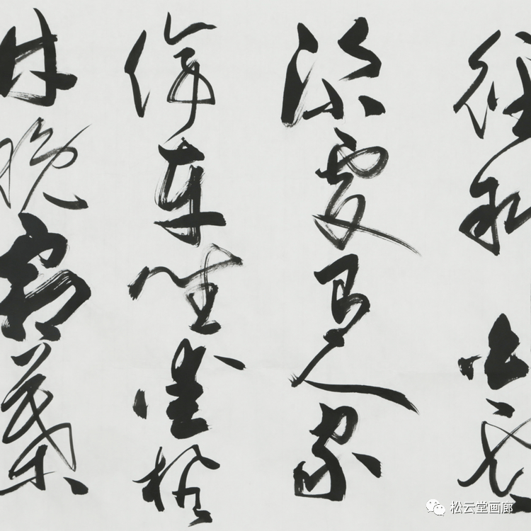 展开卷宗,那种三米尺幅所特有的大气场和那股狂放驰毫的大气势,如滔滔江水滚滚而来。在我的人生经历中,或许只有舟山外海的狂涛或北疆诡异的地貌才会有如此的惊心动魄。小小的书房哪容得下这般气势!空间被无限的展开,顿时天地之间仅存我与“他”的对话。