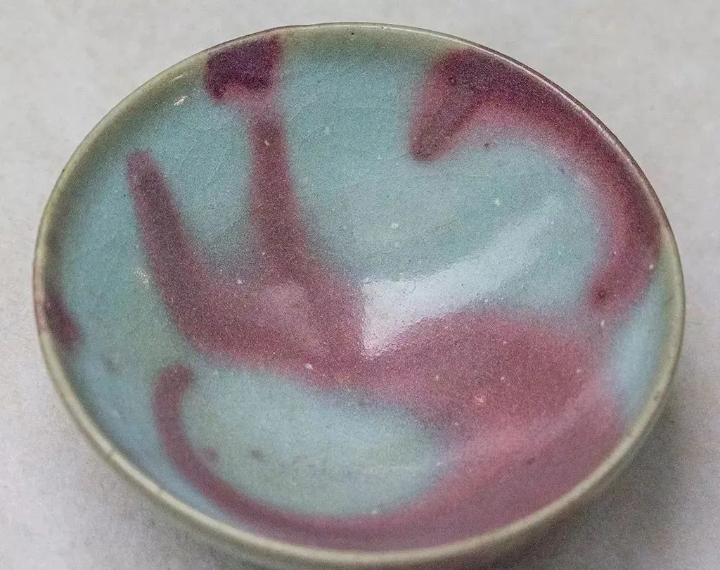 钧窑常常带斑红,高温釉中含有。