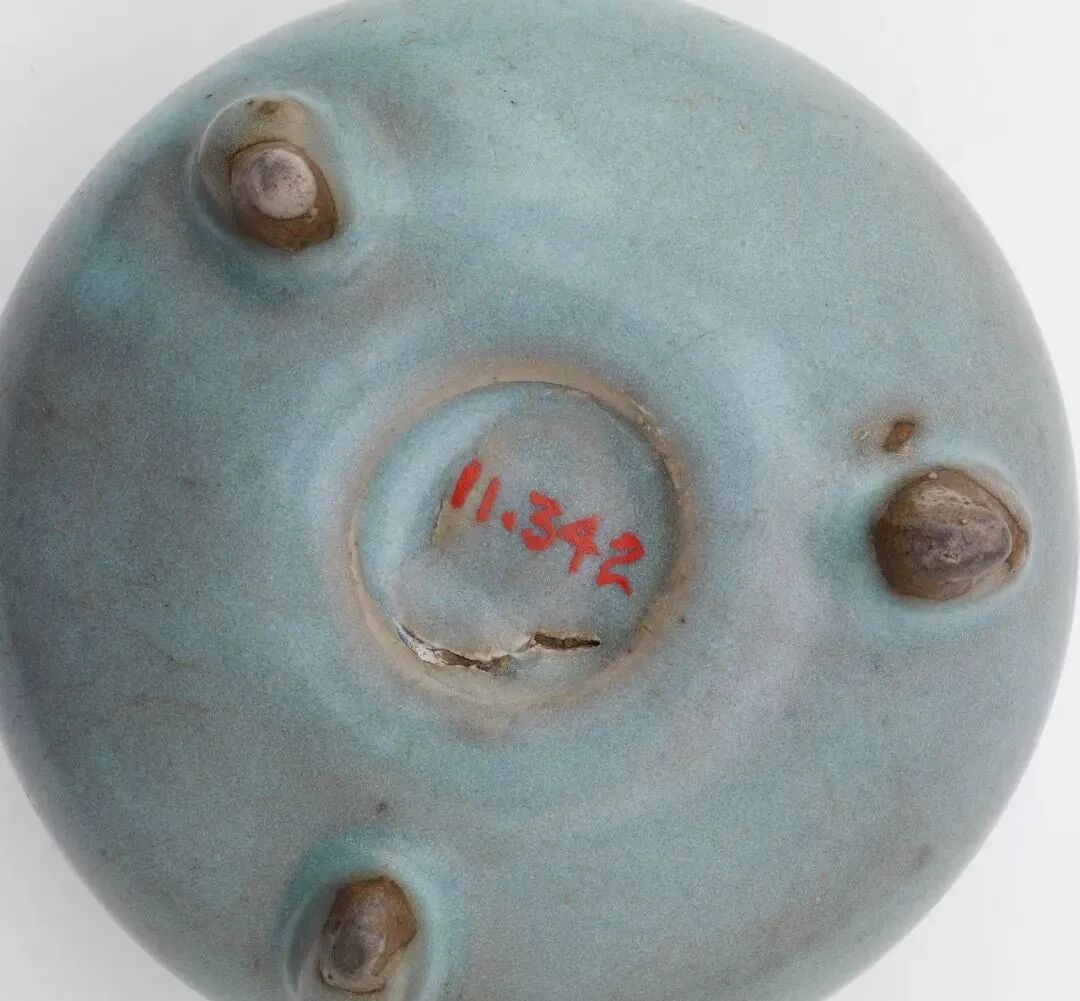 底上有蟹甲绿和记大小规格的数字,如:一、二、三、四......这些数字恰似数字款。钧窑器造型古朴典雅、釉面自然。
