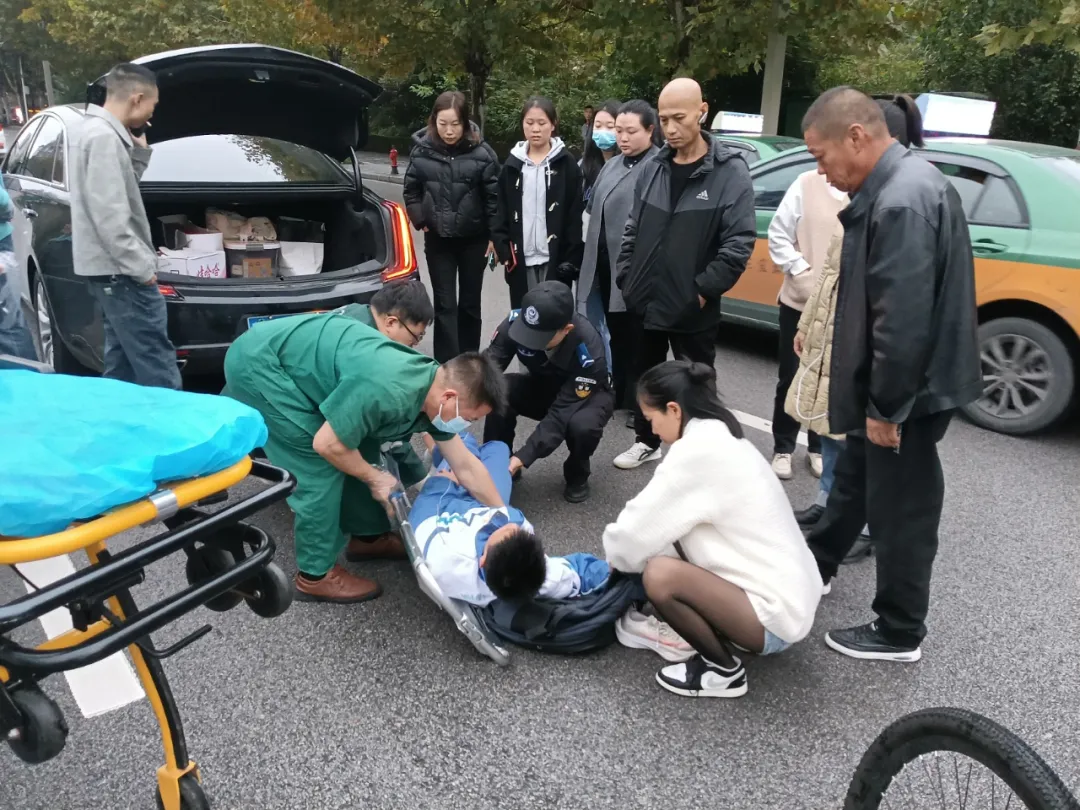 11月7日17时16分,特巡警大队巡逻队员巡逻至东风桥警务站时,发现警务站对面斑马线处发生一起交通事故。经查,易某驾驶一辆黑色轿车行驶至该路段时,不慎将一名正在过马路的学生撞倒,学生腿部受伤但意识清晰。事故发生后,特巡警队员第一时间上前开展处置工作,迅速疏导现场交通,避免二次事故发生,同时,特巡警队员立即拨打120急救电话,并初步询问伤者身体状况,待120急救人员抵达现场后,特巡警队员协助将伤者送上救护车。救护车离开后,待现场交通恢复正常,特巡警队员又继续投入到正常巡逻工作中。