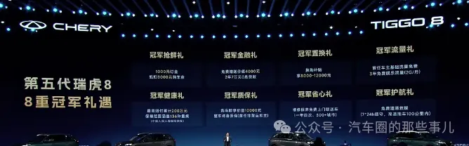 汽车圈说车据了解,目前奇瑞汽车旗下产品包括瑞虎系列、艾瑞泽系列、QQ系列、探索系列等系列车型,其中瑞虎系列包括瑞虎8系、瑞虎7系、瑞虎3X系、瑞虎5X系、瑞虎9系等车型。其中,瑞虎8系包括瑞虎8 PLUS、瑞虎8L、瑞虎8 PRO、瑞虎8卓越版等车型。竞品方面,瑞虎8潜在竞品包括捷途X70、吉利豪越L、哈弗大狗PLUS、一汽-大众捷达VS8等车型。数据显示,瑞虎8系是奇瑞汽车最畅销的车型,2025年前三季度累计销量135862辆。从整体来看,全新奇瑞瑞虎 8 在外观、内饰、空间、动力以及配置等方面都有不错的表现,尤其是双前脸设计和丰富的配置,能够满足不同消费者的需求。在 10-15 万级家用 SUV 市场中,它具有一定的竞争力。不过,市场上同级别车型也不少,比如哈弗 H6、吉利博越等,全新瑞虎 8 想要突出重围,还需要在品牌影响力和售后服务等方面下功夫。