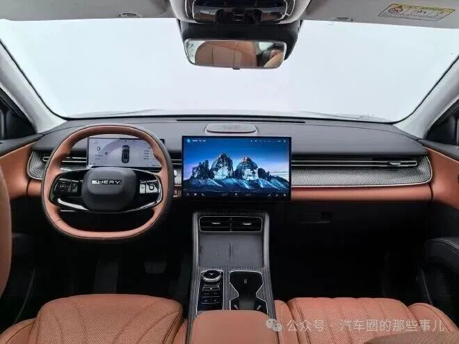 内饰部分,第五代瑞虎8整体也是采用了极简的内饰设计风格,不同之处在于,豹跃版车型的内饰设计并没有采用千篇一律的布局,而是使用了13.2英寸的竖置中控屏幕,虎踞版车型将会使用15.6英寸的横置中控屏幕。