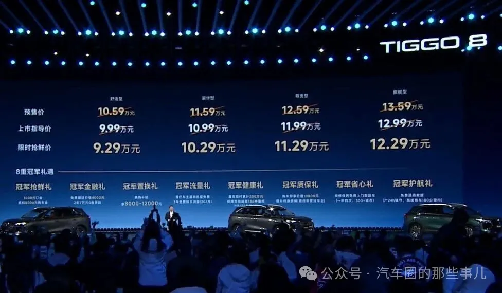 11月10日,奇瑞第五代瑞虎8正式上市。新车将会使用双外观以及双内饰的设计风格,根据配置共推出4款车型,新车共推出4款车型,售价区间为9.99-12.99万元,限时抢鲜价9.29-12.29万。新车定位家用大五座SUV,提供两种外观造型和两款内饰设计。同时,新车在动力上也将提供鲲鹏1.6TGDI发动机和鲲鹏2.0TGDI发动机双动力系统。