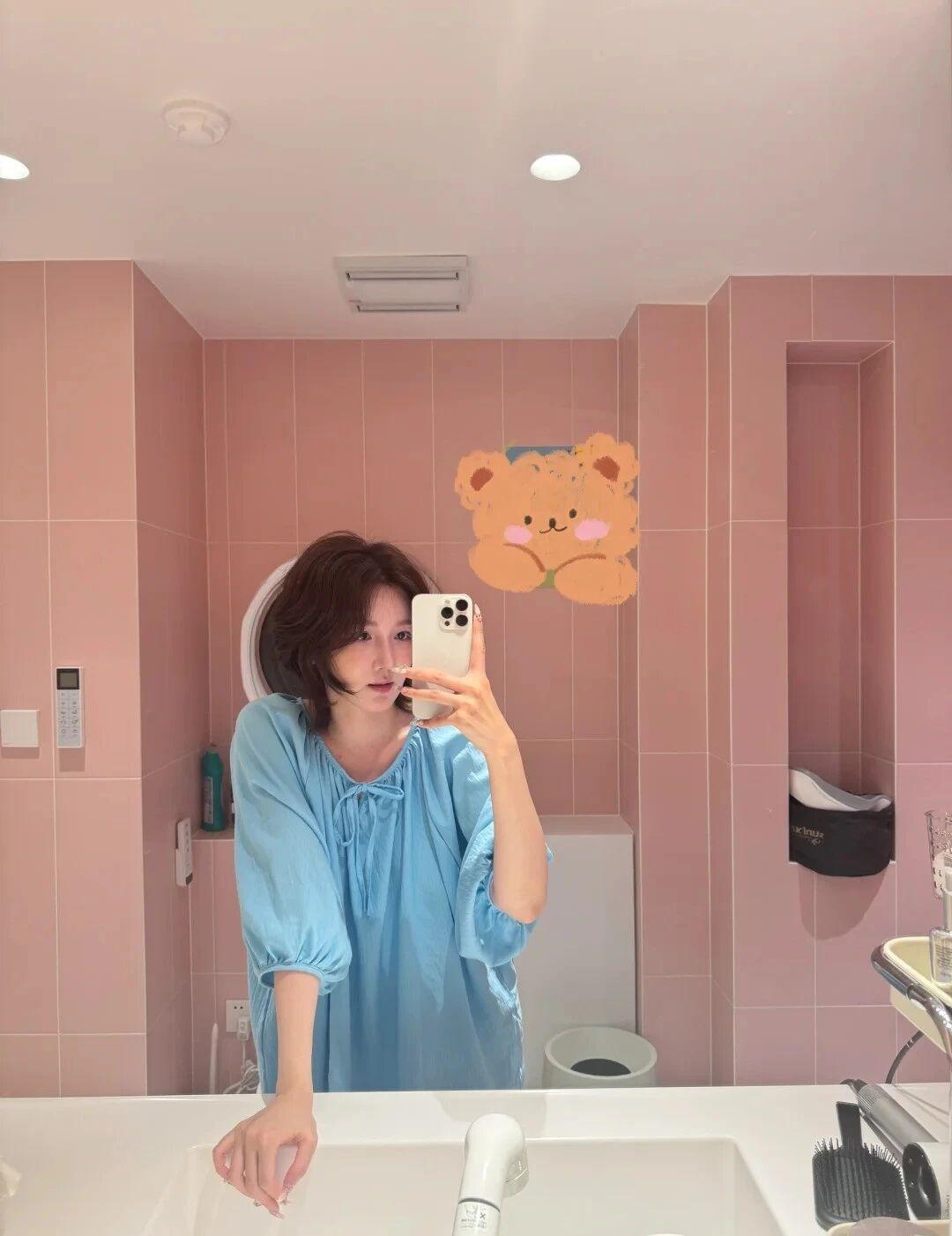墙壁选择了粉色瓷砖,少女感满满,最里面还装了个大浴缸,忙完工作,泡在浴缸里,听听音乐,闭上眼睛放松身心,想想都觉得开心!