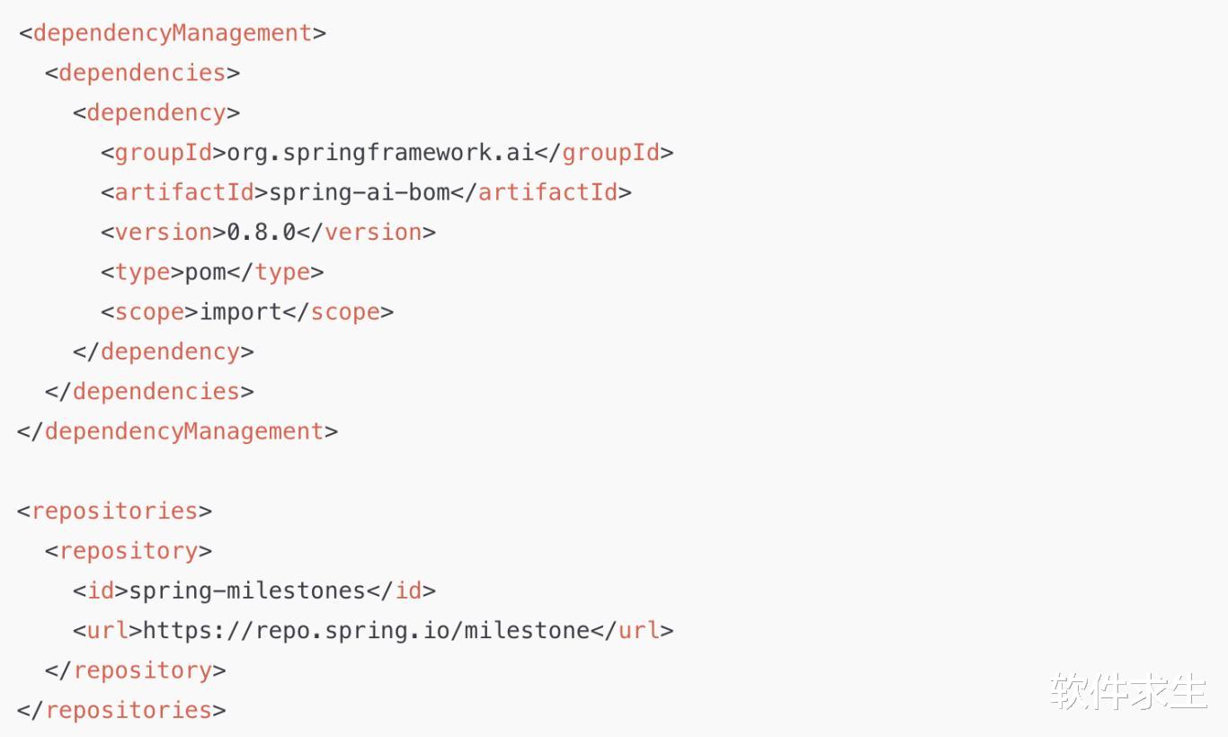 添加仓库和 BOM因为 Spring AI 目前还在飞速进化中,所以我们一般要加它的仓库与 BOM。