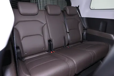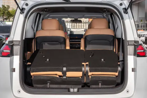 储物能力更是超出预期。常规状态下后备厢能放两个 20 寸行李箱,把第三排座椅靠背放倒并向前翻折后,容积直接拓展到 1202 升,过年备年货、周末带露营装备都不在话下。车内还有 25 处人性化储物空间,前排扶手箱能放下平板电脑,车门板储物格能容纳大瓶装水杯,二排座椅侧面有专门的手机袋,连第三排都有杯架和小储物盒,随手放个零食、纸巾特别方便。我家孩子的玩具、奶瓶之类的小物件再也不用到处乱塞了。