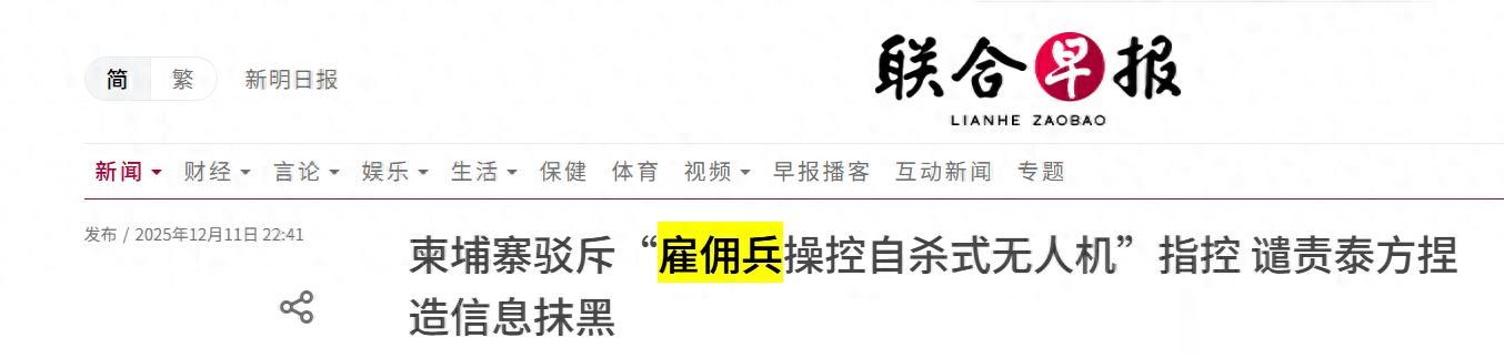 当地时间2025年12月11日,泰柬边境交战第五天,按照媒体报道,柬埔寨国防部强烈驳斥泰国媒体报道的,“柬埔寨动用将英语的雇佣兵,操控自杀式无人机打击泰国军队的”的说法,并谴责这些报道,“是捏造、虚假且蓄意歪曲”,试图抹黑柬埔寨军方。柬埔寨国防部在12月11日强调,泰国发布这类虚假信息,意图转移泰国军队进攻的关注。泰国方面稍早声称,他们怀疑,有讲英语的美国雇佣兵,参与操控柬埔寨军队无人机,对进攻中的泰国军队,发动突然袭击。