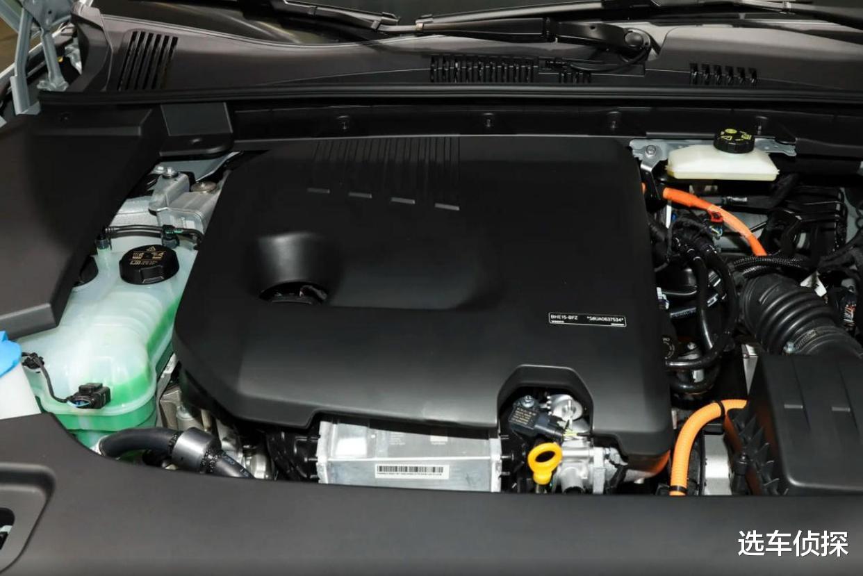 核心是1.5T的混动专用发动机,使用了增压中冷、350bar的高压缸内直喷,以及米勒循环和低压EGR技术,一方面降低碳排放,一方面增加发动机的热效率,虽然峰值扭矩的爆发转速要到2500rpm,比一般发动机更高,这意味着低转速吃力,但显然这种调校专为混动系统而来,低转速有电机,高速行驶发动机才配上用场。