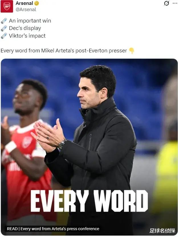 这场比赛其实阿尔特塔也未必满意,但吹风机不能天天开,再说客场拿下埃弗顿也的确不容易,结果完全可以满意,一点点找回最佳状态和信心吧。