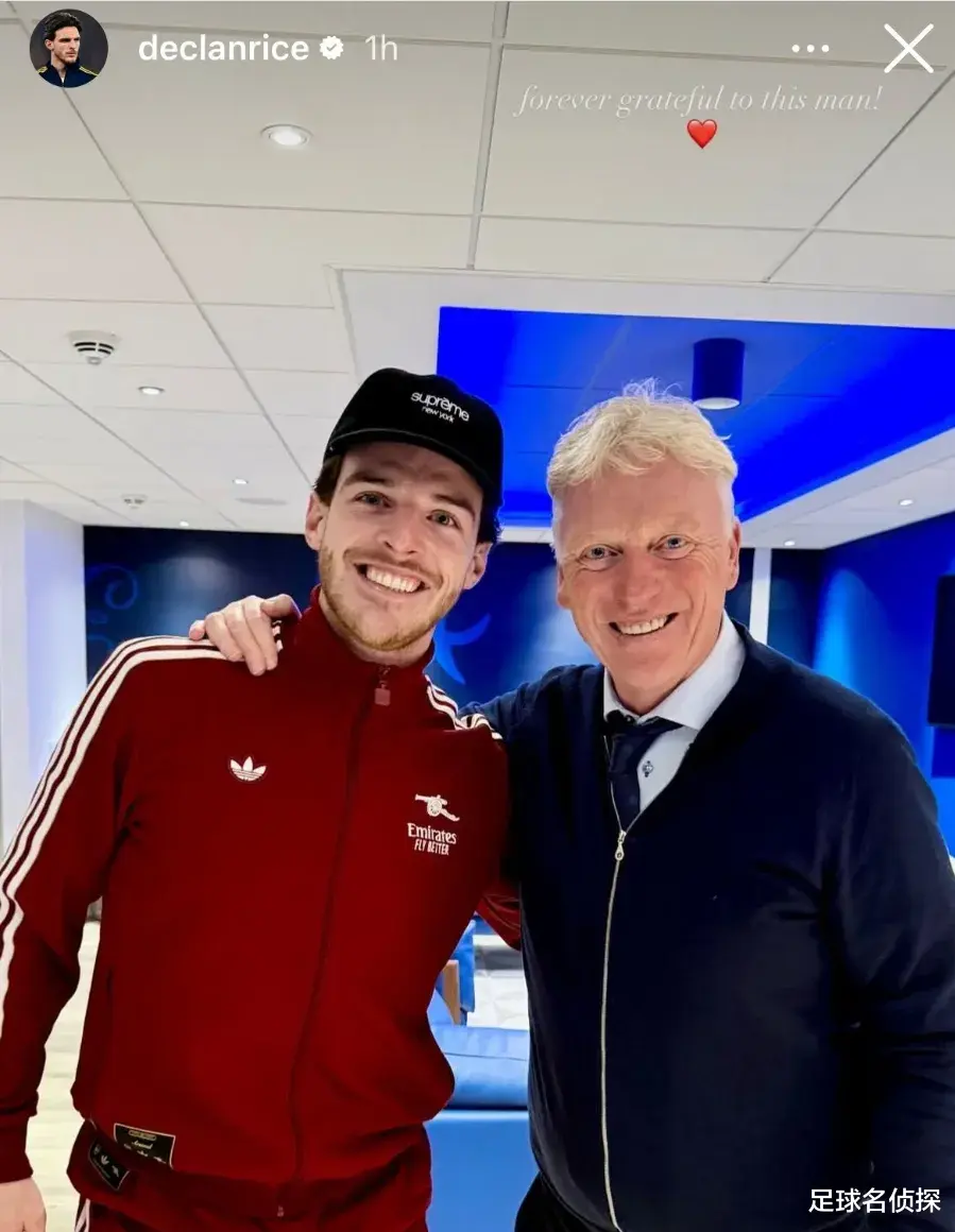 赛后赖斯找到了恩师莫耶斯合影留念,并且这名中场在社交媒体上写道:“永远感激这个人!❤”