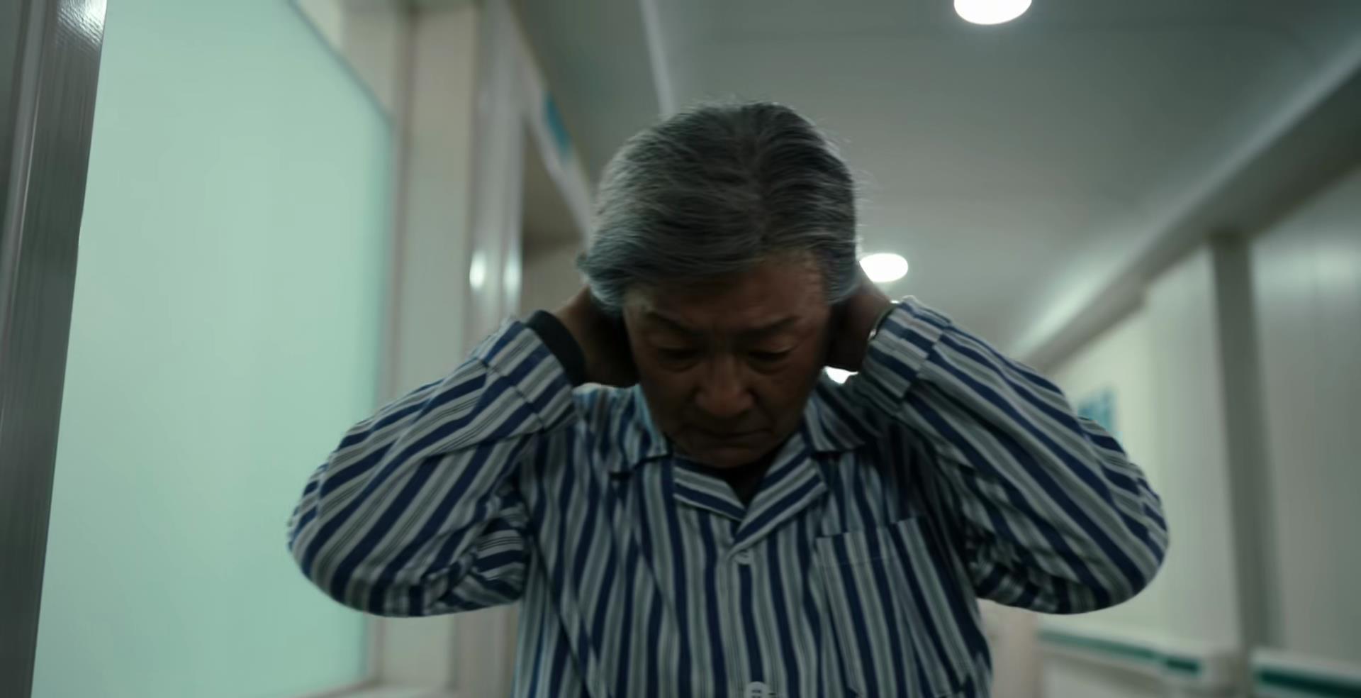 整个身体都压在犯病的那条腿上,剧烈的病痛让老天台的脸上表情凝重,没有了笑容。但是,老太太并没有就此瘫坐在地上,而是强忍着病痛又站了起来,理下衣服和头发,调整好表情,含着泪水,微笑着走向了病房。