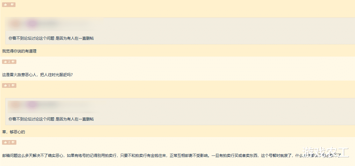 但是这个bug又有点“灵性”,有些玩家反馈说目前邮箱bug其实只影响了拍卖行,不是通过拍卖行的邮箱又可以正常使用,所以不使用拍卖行就不会出现卡邮箱的情况。也有人猜测说雷火会不会故意将人往时光服去赶,所以出现了这个bug。也有人反馈说论坛一直在删关于邮箱bug的帖子,但是因为没有统计所以不清楚有没有删贴。不过雷火真要赶人,不应该在时光服开服后再搞出这个bug吗?