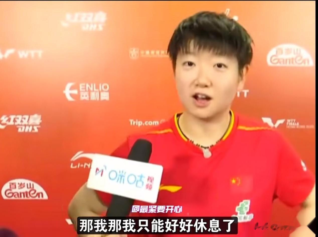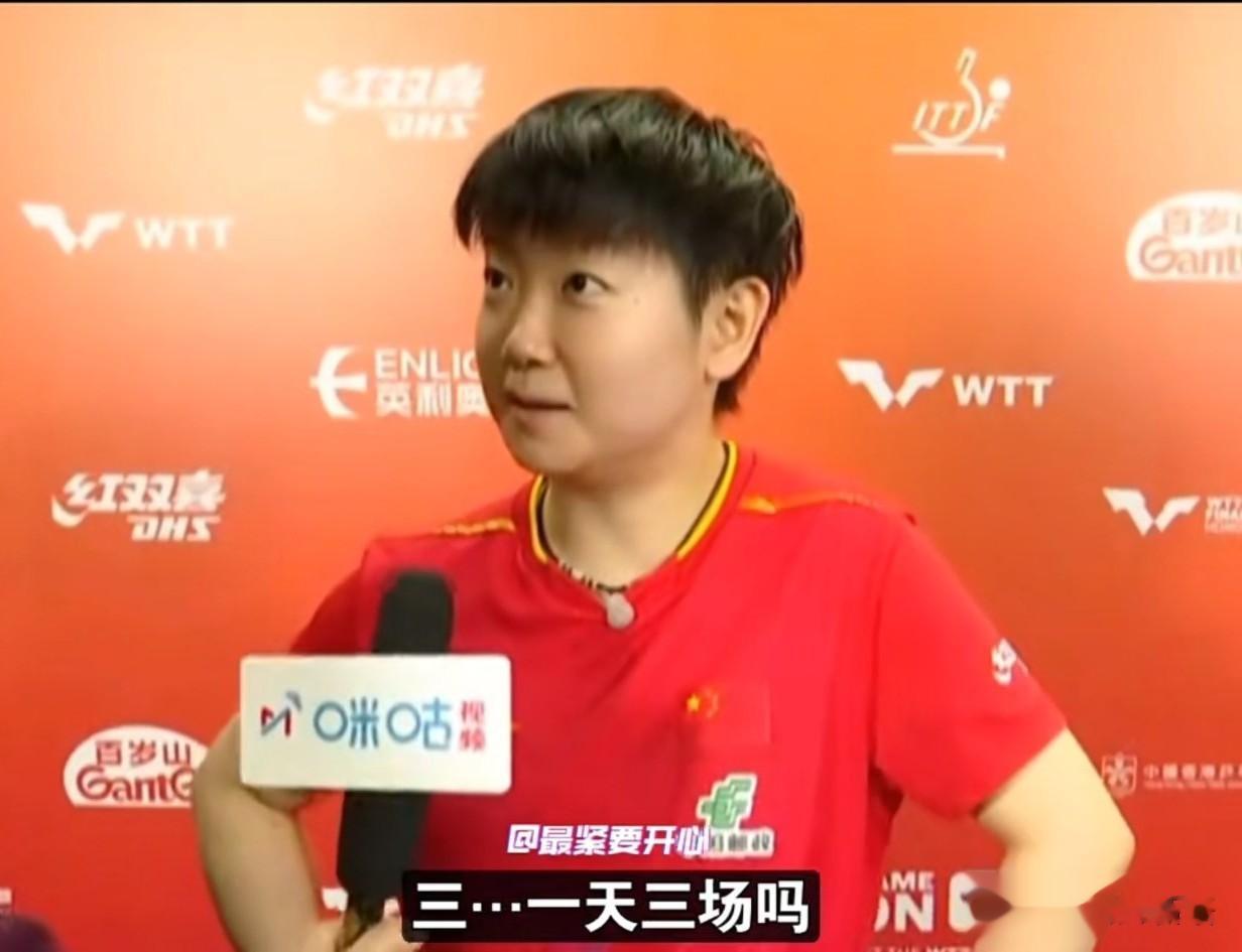虽然一日两赛,时间还离得那么紧,但是莎莎在采访时依旧保持着笑容,真的是很乐观的女孩子。对于接下来的比赛,可能会一日两赛或者一日三赛,莎莎估计没有想到会一日三赛,这孩子歪着头看着记者说:“三,一天三场吗?那我只能好好休息了。”每次比赛,她很少抱怨,都是说只要参加比赛,就会全力以赴,对于能不能休息好,莎莎说:“就首先还行,上午能有休息的时间吧我觉得。但其实比赛我觉得很正常,因为其实在巴黎周期自己也经常兼三项或者一日三赛吧。我觉得其实身体状态还是没有什么太多的这种问题,我觉得更主要现在考验的是自己的这种精力的分配吧,因为确实总决赛也是今年最后一个国际比赛了,要全力以赴打好每一场。”