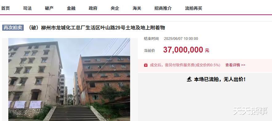 近日,备受关注的柳州市龙城化工总厂生活区叶山路29号土地及地上附着物迎来了第18次拍卖,起拍价只有3700万元,可惜,还是没有人愿意缴纳300万元保证金报名竞拍,拍卖遭遇第18次流拍。