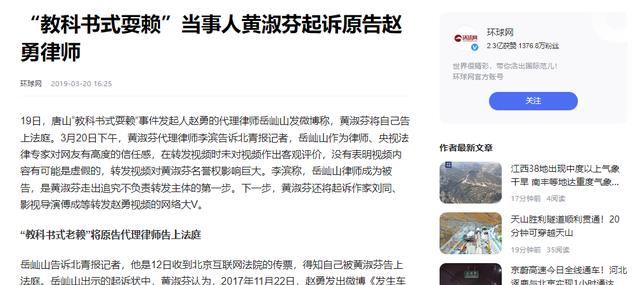 环球网 2019-03-20 “教科书式耍赖”当事人黄淑芬起诉原告赵勇律师