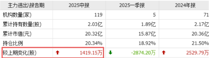 机构动态:二季度持股机构数119家,较一季度增加114家,合计持股2.03亿股,加仓1419万股。