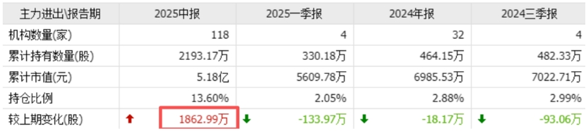 机构动态:二季度持股机构数118家,较一季度增加114家,合计持股2193万股,加仓1862万股。