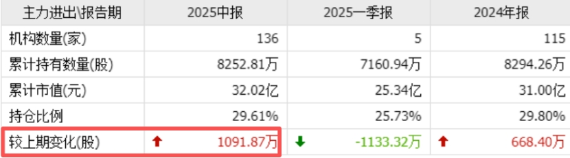 机构动态:二季度持股机构数136家,较一季度增加131家,合计持股8252万股,加仓1091万股。