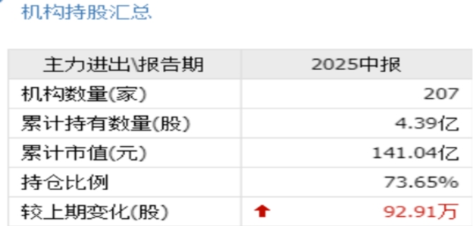 机构动态:二季度持股机构数236家,较一季度增加205家,合计持股1.12亿股,加仓3913万股。