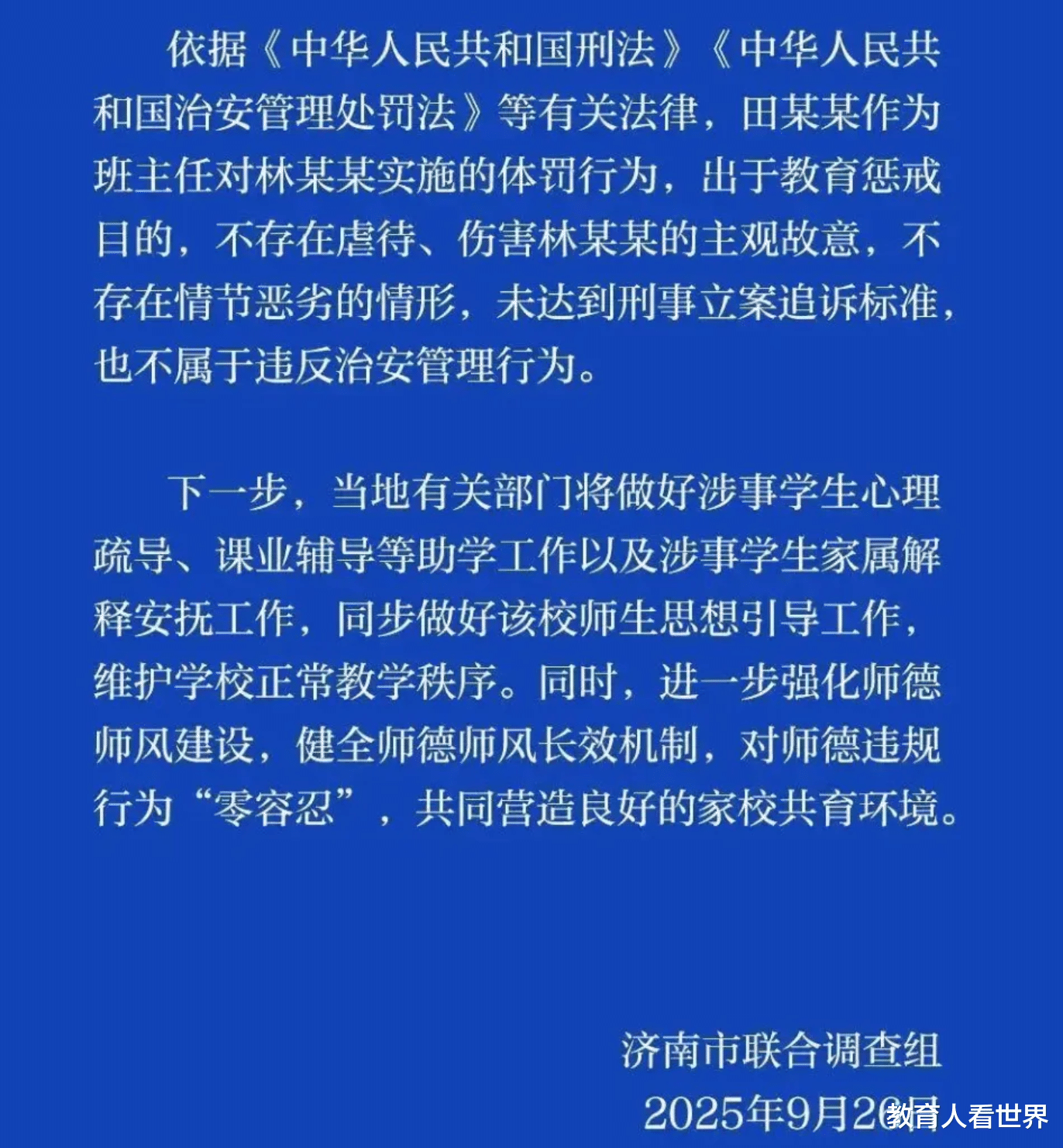 那位济南的老师后来等来了调查组的还清白,可她失去的呢?是那个秋天起再也不能站上讲台的权力。无数老师面对的是看到手机震动就心悸的后遗症,是无数个深夜反复质问自己“何必认真”的绝望。这种绝望,正在悄无声息地蔓延。今天她因管教网暴而退,明天就会有更多老师学会明哲保身——最终付出代价的,会是谁的孩子?