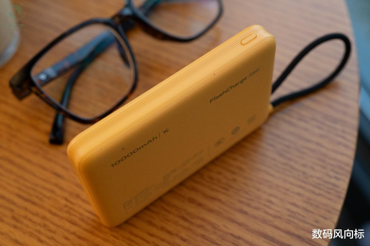 最初吸引我的是它的外观设计,这种“竞速黄”的配色充满活力,不像传统充电宝那样沉闷。拿在手上,能明显感受到磨砂外壳细腻的触感,四周的凹陷纹理不仅美观,还起到了防滑作用,握持感非常舒适。它的厚度仅有1.5厘米左右,重量大约177克,轻巧得可以轻松放进口袋或随身小包,带出门几乎感觉不到负担,彻底告别了以往携带充电宝时的累赘感。