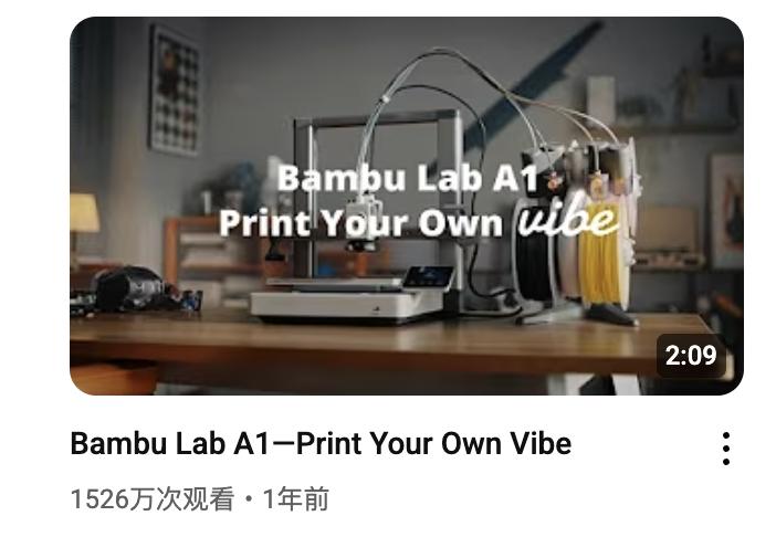 去年,拓竹在YouTube上发布了新产品A1的demo,刚一问世就火爆外网,观看量超1500万。