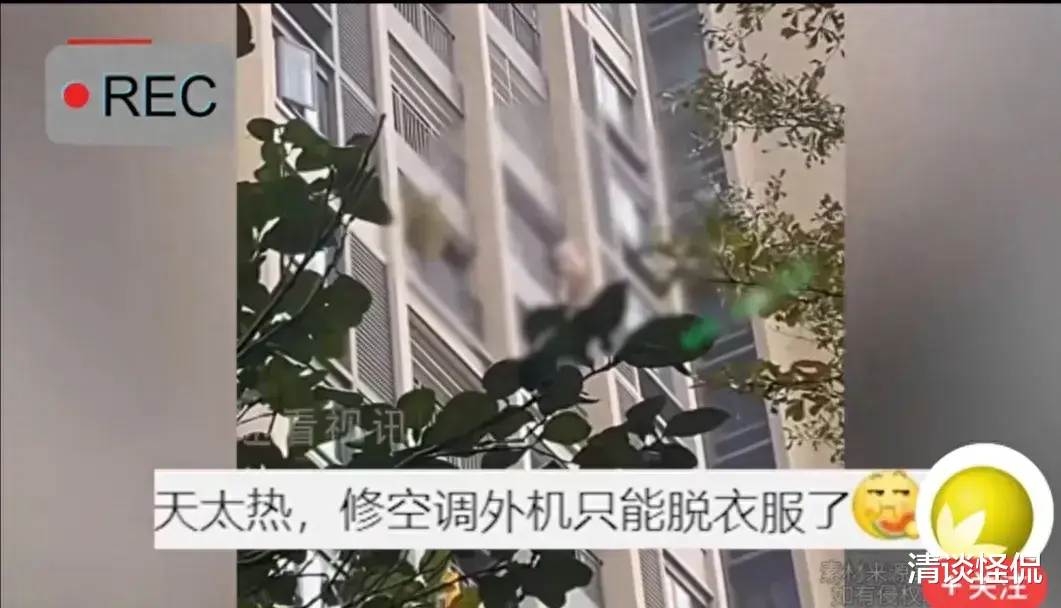 有人忍不住替这位女士解释道:这有啥,人家是修空调太热,自己扒了衣服在凉快,有何不妥?