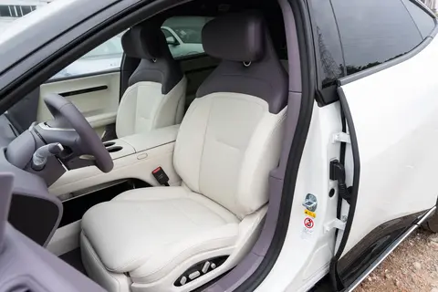 进入车内,首先映入眼帘的是那块35.4英寸的全液晶仪表屏幕,配合15.6英寸的中控屏幕,营造出了相当不错的科技氛围。真皮材质方向盘手感细腻,支持上下前后电动调节,并具备多功能控制、记忆和加热功能。座椅采用了Nappa真皮材质,主副驾驶位均支持电动调节,包括前后移动、靠背角度、高低调节以及头枕、腰部、腿托的局部调节。前排座椅还配备了加热、通风、按摩功能,主驾驶位具备记忆功能,而后排座椅也提供了加热功能,整体舒适性配置相当到位。智能化配置是该车的另一个加分项。车机系统基于HarmonyOS打造,支持5G网络连接,具备OTA升级能力。语音交互系统支持免唤醒功能,可以实现主驾驶、副驾驶、第二排的分区域唤醒识别,连续性语音识别和"可见即可说"功能让人机交互更加自然。手机App远程控制功能涵盖了车辆监控、远程控制、充电管理、服务预约、数字钥匙等多个方面,实用性很高。