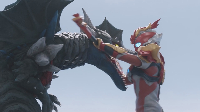 光波怪兽虽然强大,但奥美迦朱雀装甲可是无敌的最强装甲,对付起来还是没问题的。然而,奥美迦原本人格突然抢夺了掌握权,宙人人格被覆盖。奥美迦突然停止攻击怪兽,坐视怪兽离开,还回收光成手中的星石怪兽。