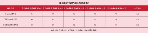 测评方法:本次音质实测,我们会通过播放同一段多频段原声音频,再由5名佩戴者分别佩戴这3款助听器,然后通过主观满意度评分综合评估各款助听器的音质表现。