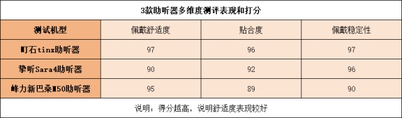 测评方法:这次测试,我邀请了三位年龄不同的使用者,每人轮流佩戴这三款助听器在户外散步、上下楼、取戴频繁的情境中进行测试,并对佩戴舒适度、佩戴稳定性和贴合度三个维度给出评分。